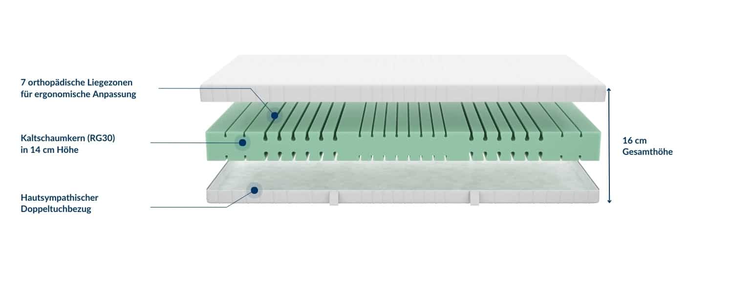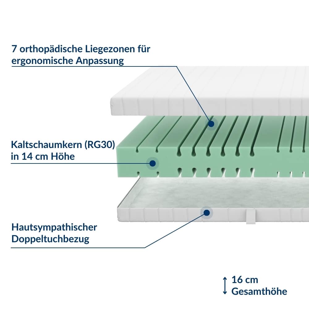 - Kaltschaumkern (RG40) in 14 cm Höhe